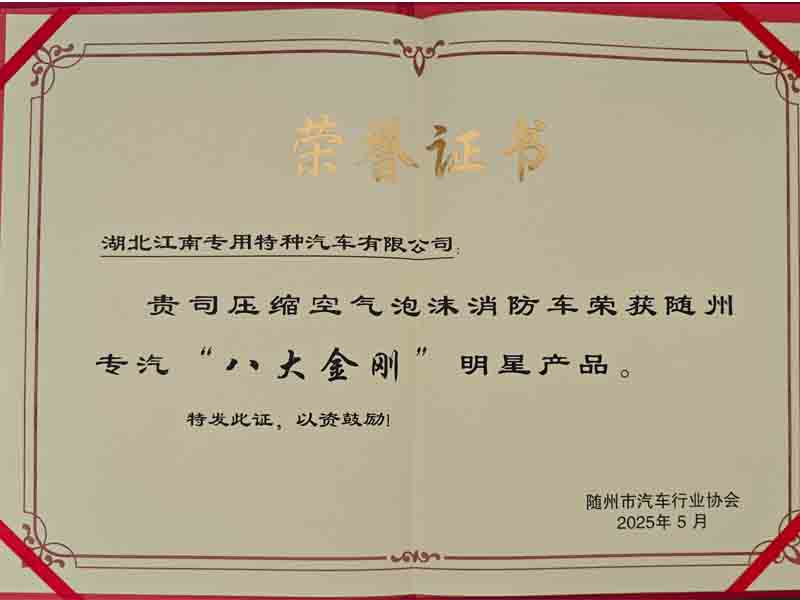热烈祝贺公司压缩空气泡沫消防车荣获随州专汽“八大金刚”明星产品。